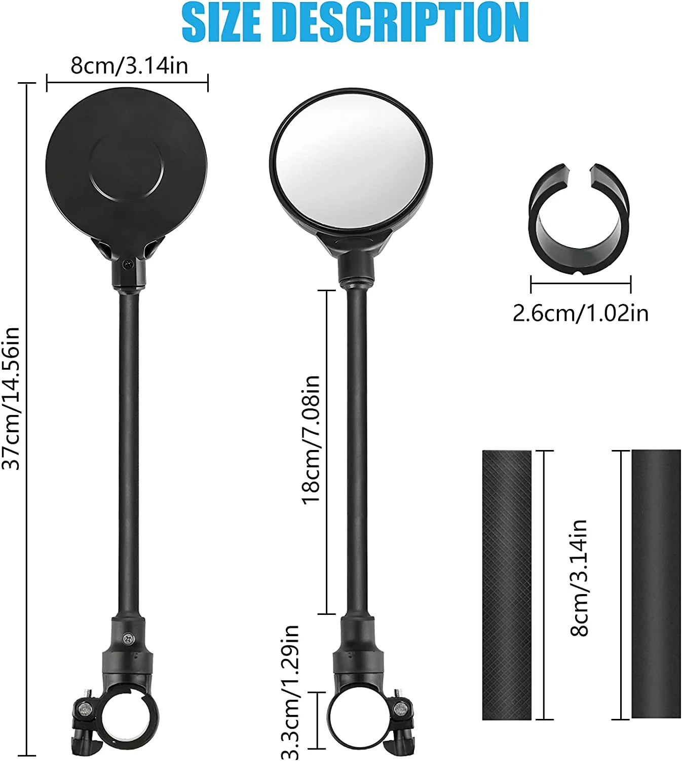 - 【Wide & Clear Vision】The rear view mirrors with 80mm in diameter to ensure maximum coverage and clear display, the 18cm long arm and the convex lens to expand the field of view, offer a wide clear view of the surroundings and the road conditions behind.