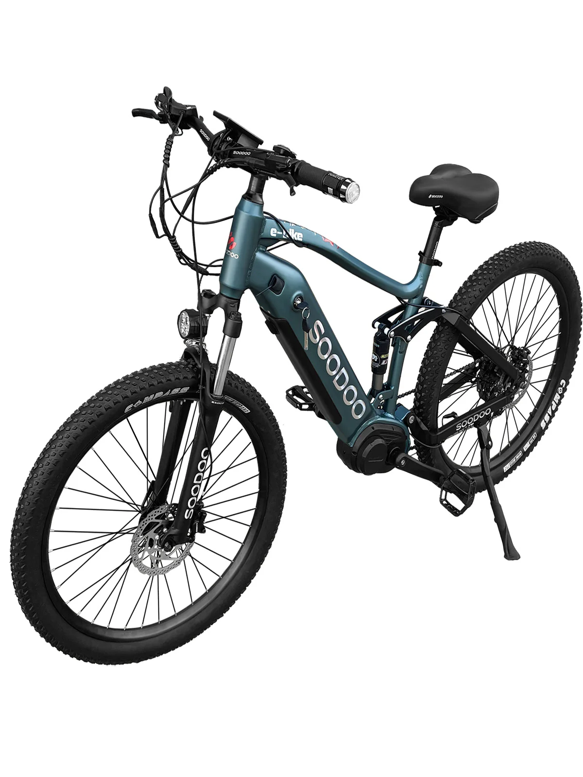 The Dark Green Alpha is one of our new electric bikes launching in 2023. It is the latest advancement of our flagship mid-drive model. Get more uphill capabilities with the mid-drive great geared-hub 359W motor and built-in battery. With the four-link suspension, it have more shock absorption.